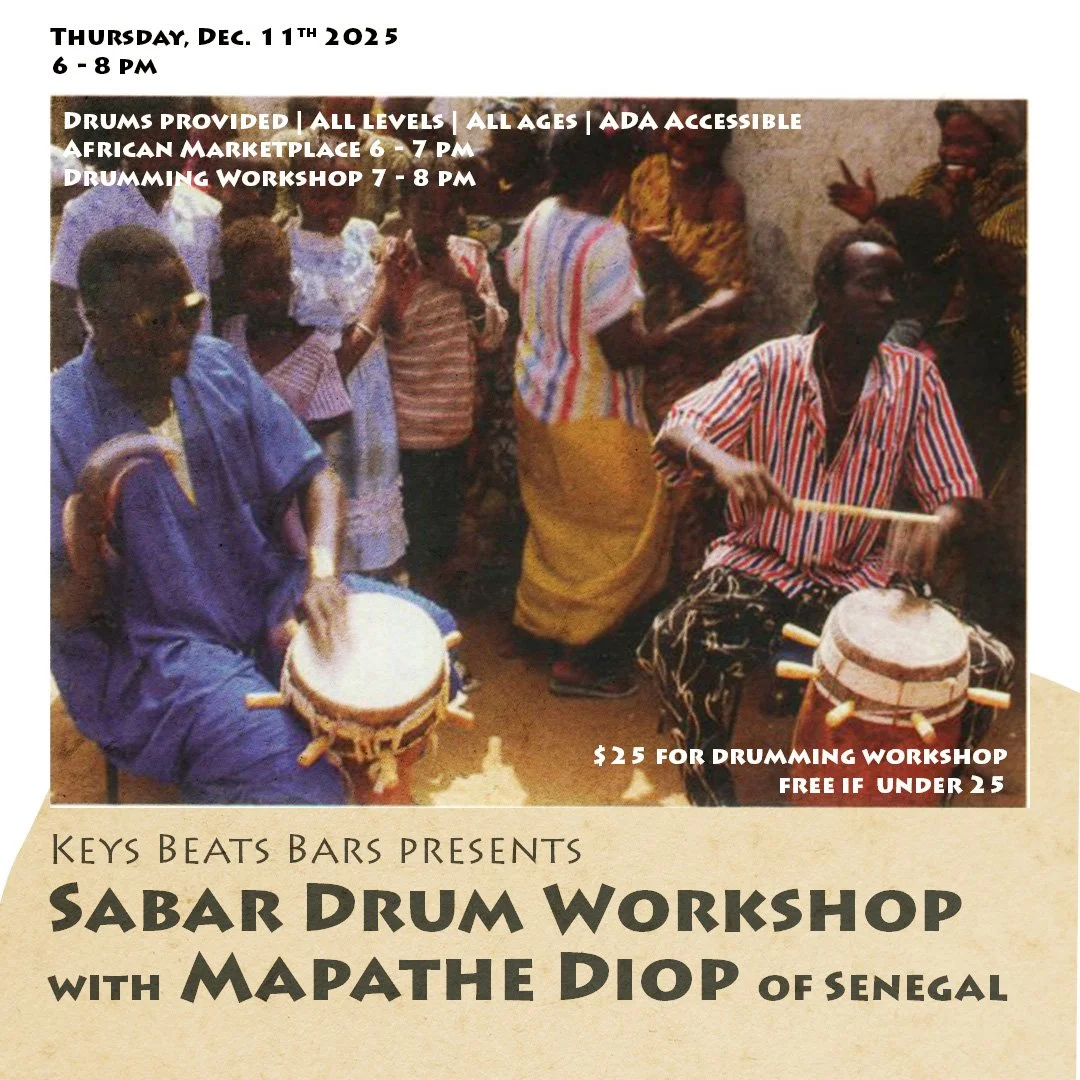 Celebrate the holidays, shop, buy African goods and stick around for a drumming workshop with Senegalese Master Drummer Mapathe Diop.